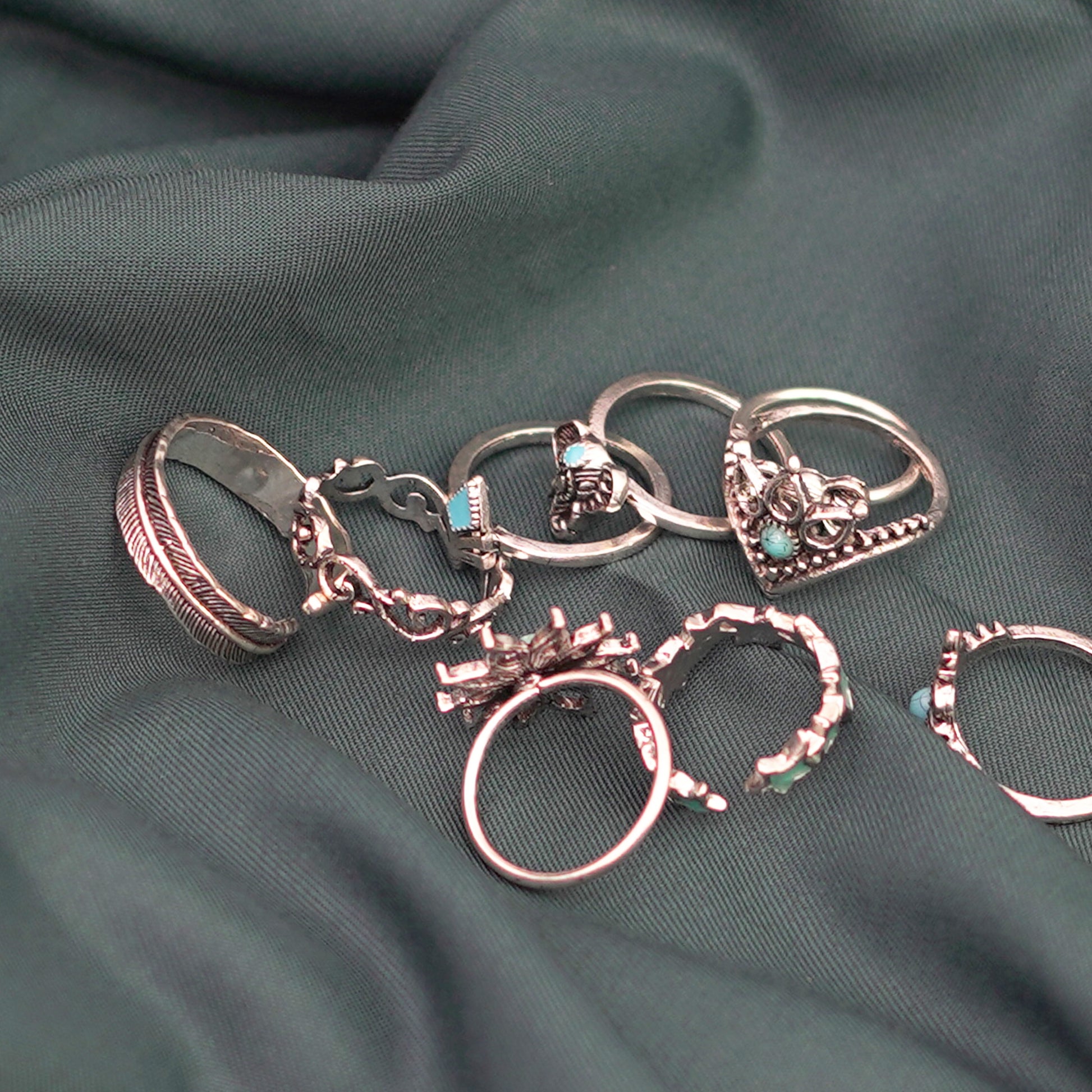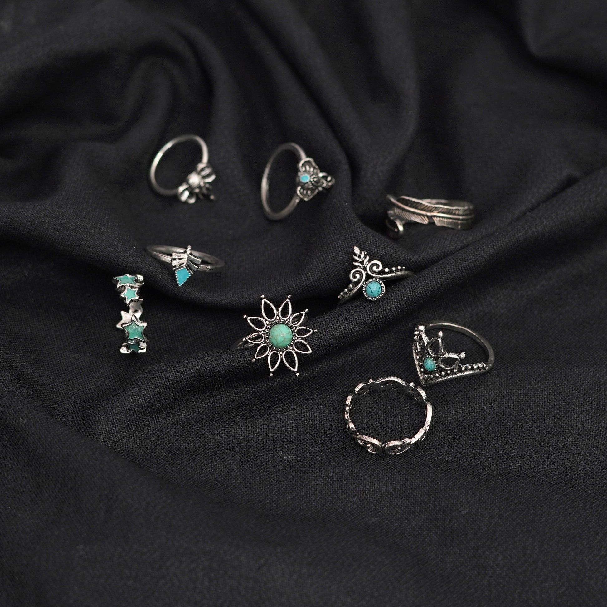 9 Ethnic Style Flower Faux Gem Finger Rings