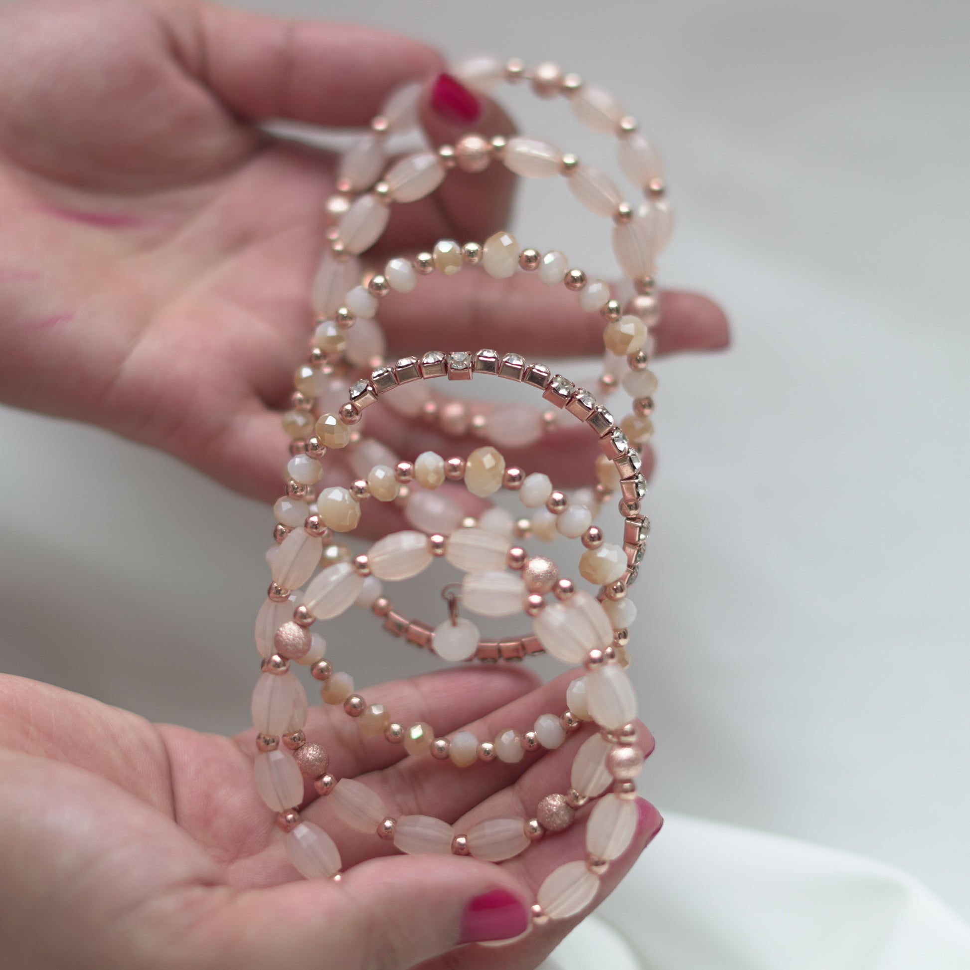 Crystal Beads Metal Bangles for Women